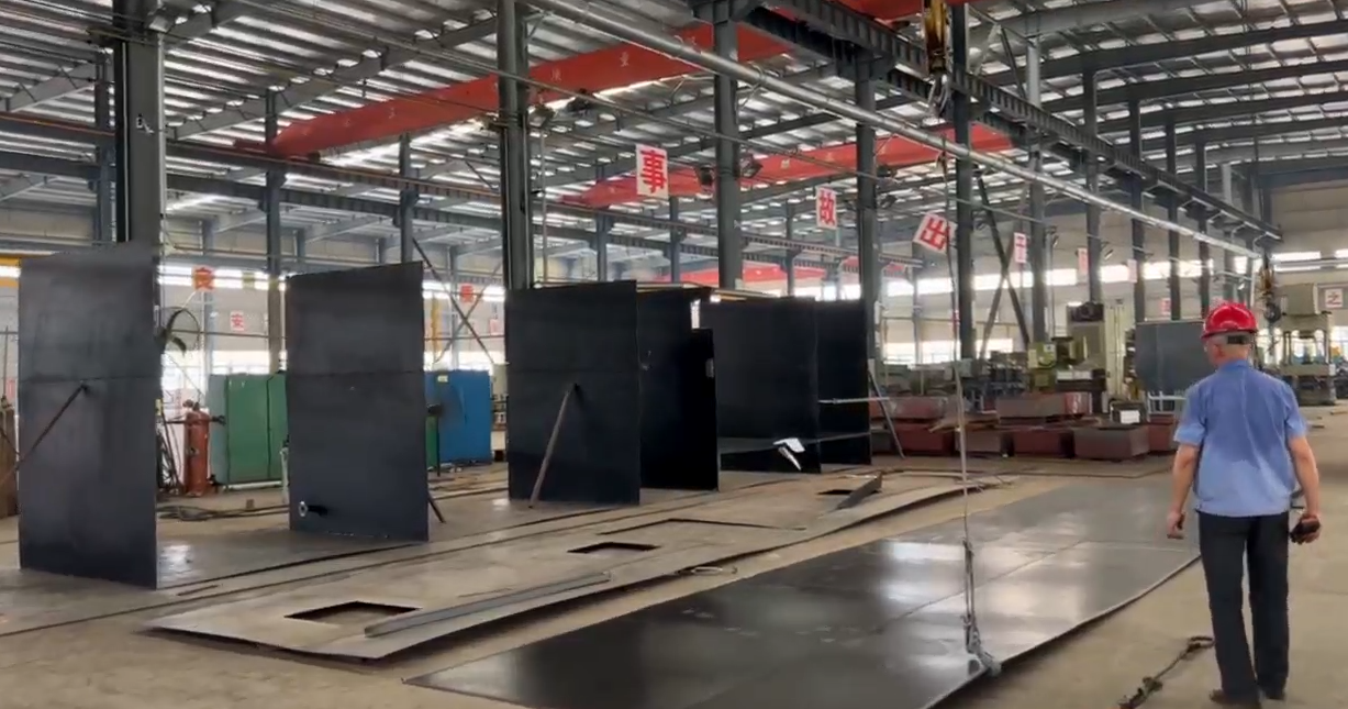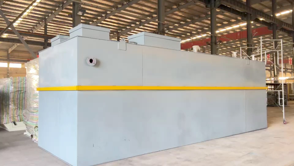 污水处理一体化设备开始拼装,11米长,带MBR池、好氧、缺氧、清水、设备间,内部工艺管道组件将在顶板焊接前安装完毕